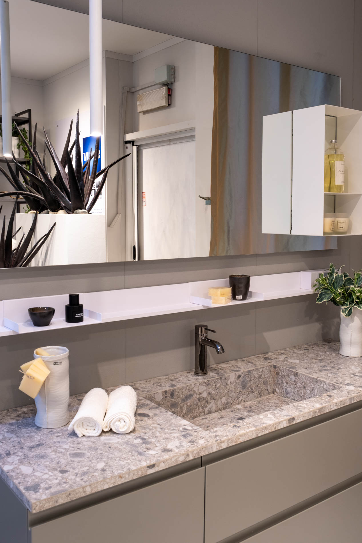 >> Piano con lavabo integrato in Gres Pietra D’Iseo